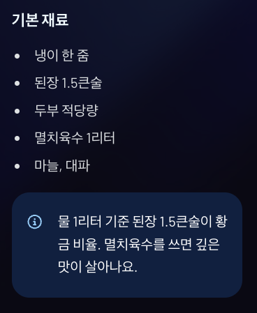 | 된장 | 1.5큰술 |