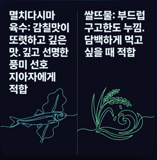 🍲 멸치육수와 쌀뜨물 중 무엇이 더 잘 맞을까요?