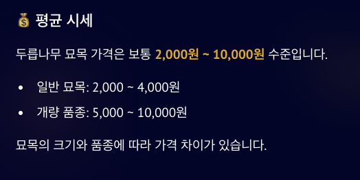 | 일반 묘목 | 2,000 ~ 4,000원 |