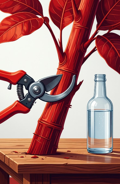 수경재배를 시작하려면 먼저 뱅갈 고무나무의 가지를 잘라 삽목을 해야 합니다. 너무 어린 가지보다는 어느 정도 단단한 가지가 좋습니다. 보통 잎이 2~3장 정도 달린 줄기를 선택하면 성공 확률이 높습니다.
