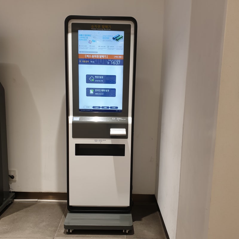 티머니GO 앱으로 미리 예매했다면 무인발권기로 빠르게 발권 가능해요. 현장 예매도 가능하지만, 무인 시스템 운영 시간(05:30~08:30 / 22:00~02:00)에는 카드 결제만 가능하니 참고하세요.