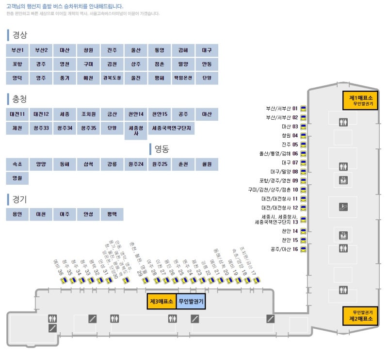 서울에는 동서울터미널, 센트럴시티(호남선), 그리고 오늘 소개하는 강남 서울고속버스터미널(경부선)이 있어요.
