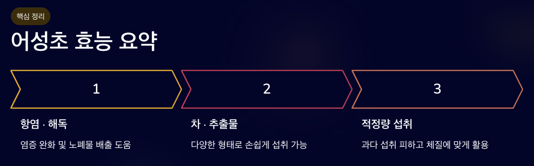 어성초 효능은 항염 작용과 해독 작용 등으로 알려져 있으며 건강 관리에 활용되는 약초입니다. 차나 추출물 형태로 섭취할 수 있지만 과다 섭취는 피하고 개인 체질에 맞게 사용하는 것이 중요합니다.
